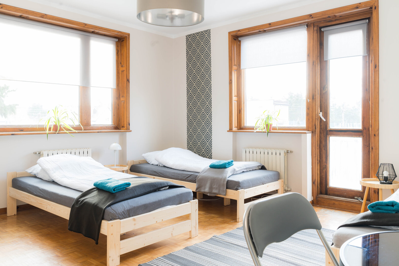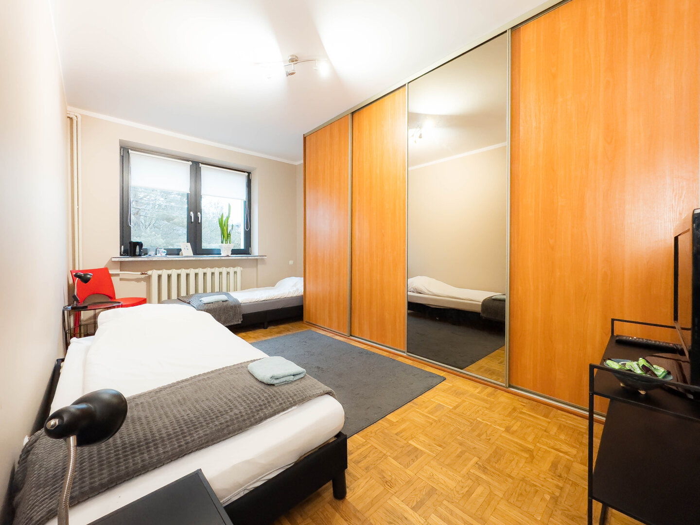 - rolety zaciemniające w oknach pokoi